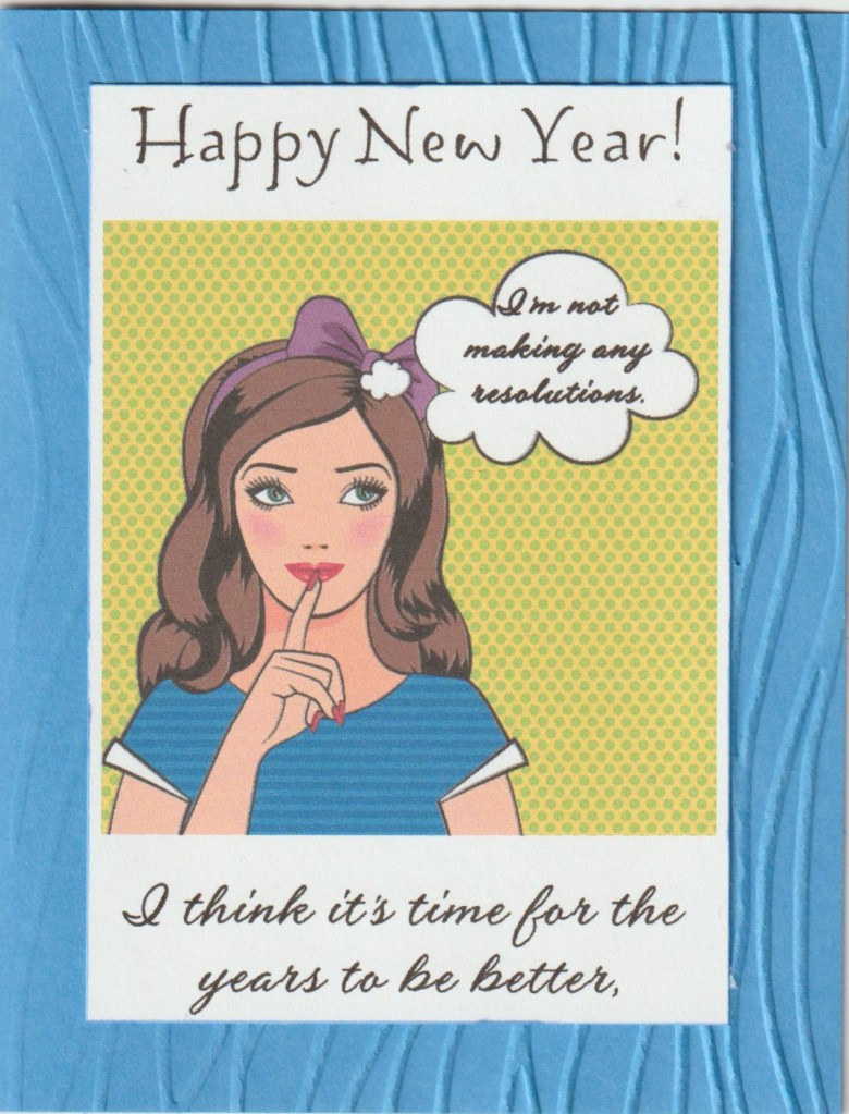Hello and welcome. Today’s card is DOS’s first chuckle card for 2025. I found the sentiment, “I’m not making any resolutions. I think it’s time for the years to be better, not me!”, somewhere on the internet. For the image I Googled snarky women clip art. All the printing was done in my Hallmark card program. Embossing folder used is Seascape by Stampin Up.