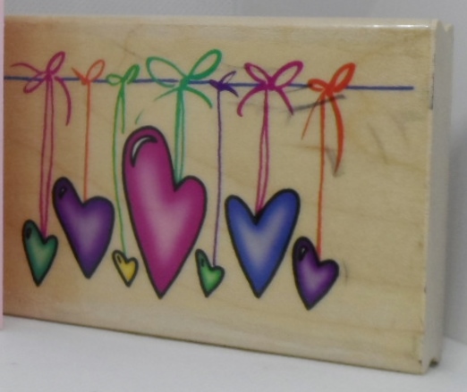 Red rubber mounted stamps are usually the most neglected product in my “elf” room but in the process of searching through my Valentine supplies I came across this hanging heart stamp. It’s an Inkadinkadoo Kathy Davis stamp that I am pretty sure I purchased at my local AC Moore store the beginning of my stamping hobby back in 2005…..wow 20 years ago. I’m still excited to be making and spreading cheer.