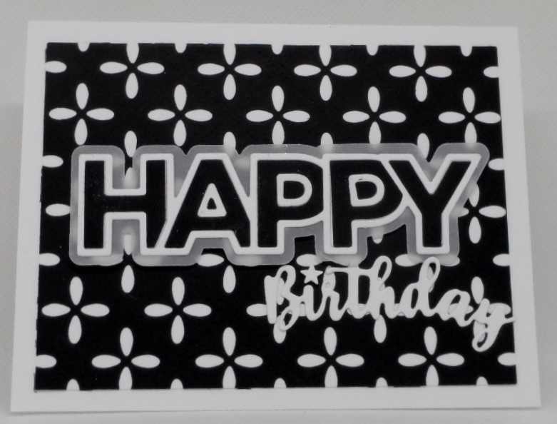 It’s a black & white simple birthday card today but I’m really lovin’ it! The unbranded coverplate die didn’t seem to leave my desk so I put it back to work making my background panel. SimonSaysStamp’s Chunky Happy and a birthday word die that was gifted to me from a friend completes this card.