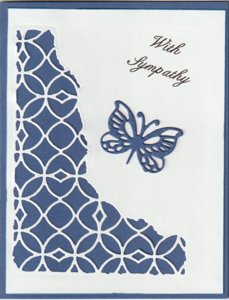 What a lovely card! That butterfly is beautiful, & blue is one of my favorite colors – perfect for this Sympathy card!
