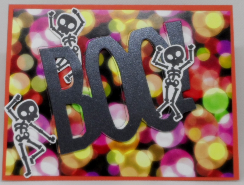 There was time for one more Halloween card and I decided to go to a Whimsy Stamps patterned paper pack for this fun design, die cut the Tim Holtz word die several times after deciding that I liked the black layer the best and added three skeletons from Taylored Expressions Stayin Alive stamp/die set. My card will be shared with