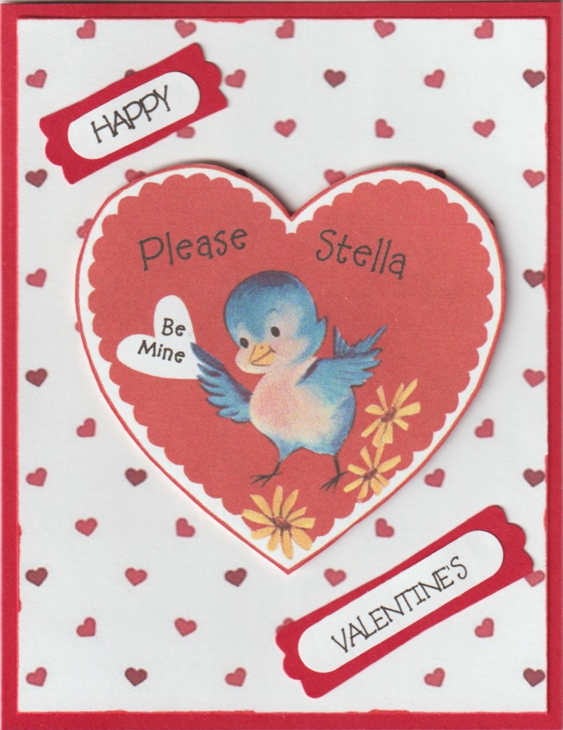 Hello and welcome. Today’s card is for our great-granddaughter. Background paper and clip art image were found online but I added the name. Since I didn’t have a die to fit the image, I hand cut it. Sentiment was printed on the computer and punched with Stampin Up’s modern label and word window punches. To make the label smaller after punching it out I stuck it to a piece of paper then moved the punch over and punched again. I hope you can understand how I did that. I’m not good at explaining things in writing.