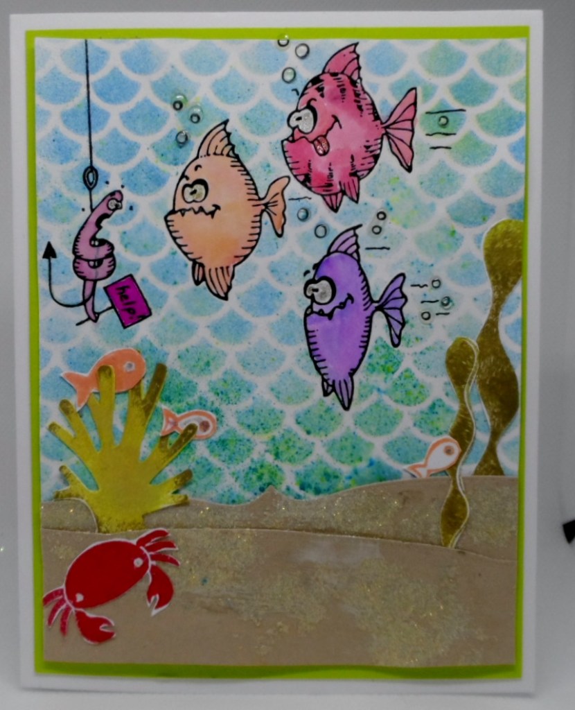 I found the dragonfly dies on Amazon which is a set of two –detailed and outline. After cutting the outline on the front single layer card, I then added the detailed die and embossed in to the inside of the card. Then die cut once more the detailed dragonfly and colored it. With my sticky fingers I glued each individual section to the embossed inside. Then backed the detailed outline with clear transparency sheet. Both dies are the same size and cut nicely. My clouds were made using a SSS cloud stencil and Distress Oxide Tumbled Glass ink. The sentiment is from GKD’s Showtime StampTV Kit Picture It! As I was adding the sentiment I kept on thinking “be straight, be straight”. Whew…it worked without the Misti and a red rubber stamp too.