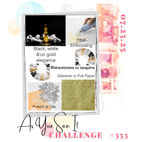 A fun glittery mini slim card from my Taylored Expressions Virtual Stamp Joy class. My embossed background is a Taylored Expressions Sweet Squares embossing folder. It was a fun card to make and a fun class.