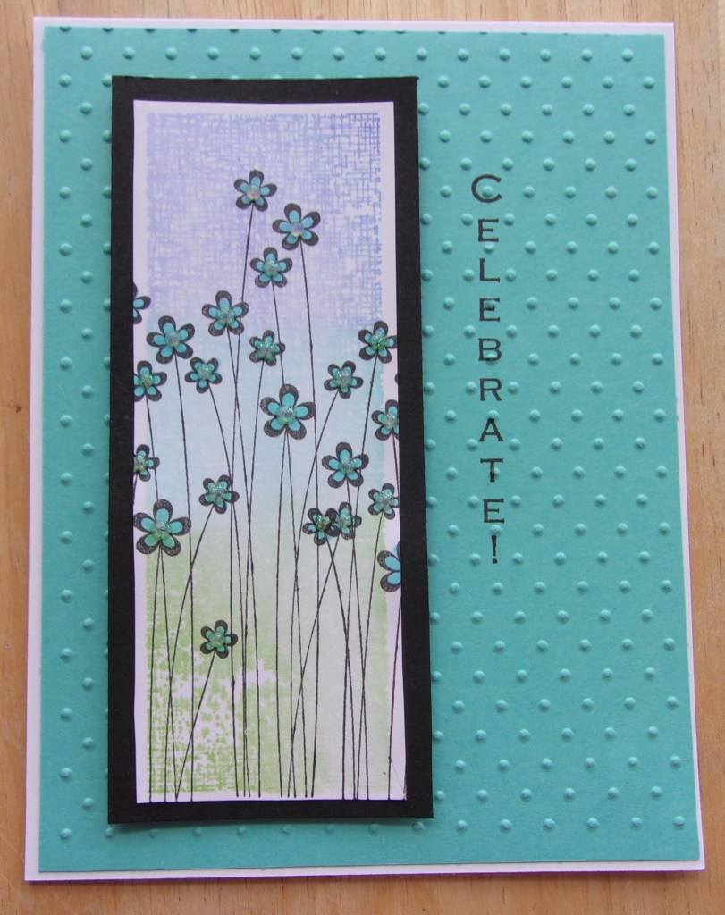 I turned her card layout and made mine portrait, rather than landscape. I chose to use flowers rather than butterflies and used a die to make my dots, rather than patterned paper.