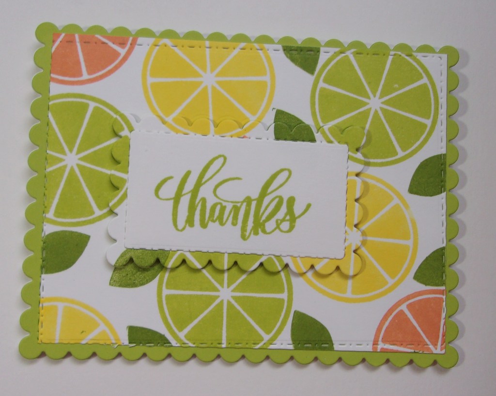 The Double Trouble challenge is to use a die cut or punch and then you meet Thing 2’s challenge to add woodgrain. They are collaborating with Use Your Stuff which is about woodgrain. Power Poppy challenge is to use fruit or vegetables on your card.