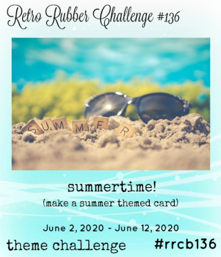 This was a fun card to create. I pulled out every tropical set that I can remember owning and used stamps from three companies. The particular entry is for the Retro Rubber Challenge of Summertime.