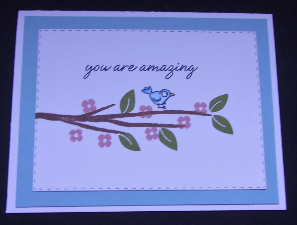 Each quarter, Split Coast Stampers has a Virtual Stamp Night where challenges are posted every hour or two over a 2 day period. Prior to this is a Mini challenge, where 3 challenges are posted. The Spring theme is The Great Outdoors. Following are my cards for the mini challenges.