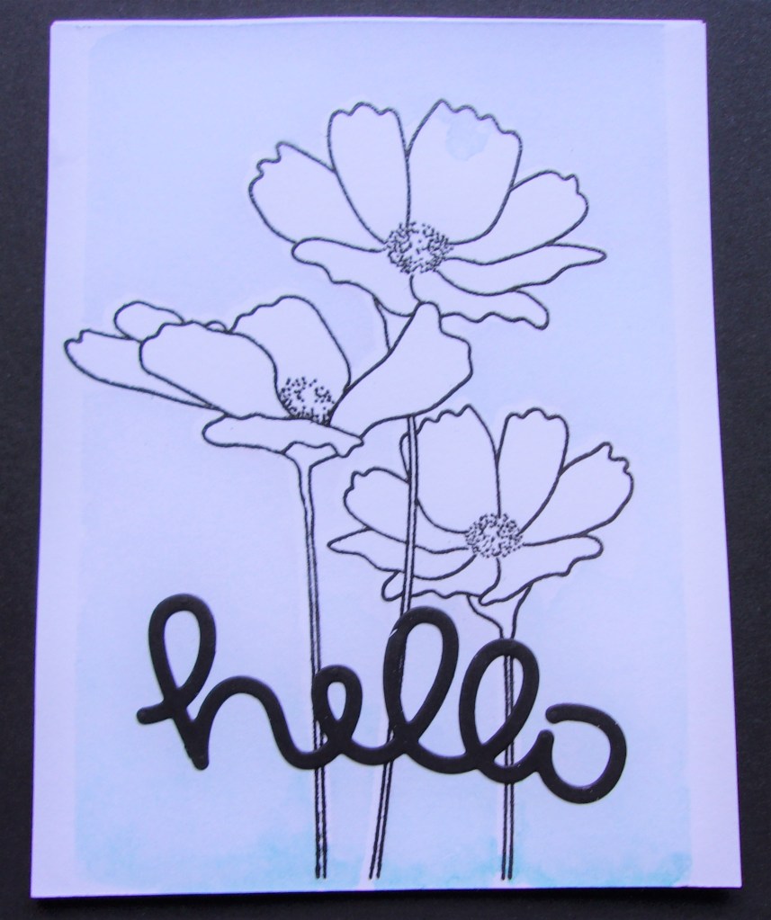 I used the MFT Flower in Bloom stamp and matching die for this card. I stamped in Versamark and Gina K Designs Black ink and embossed in clear. I like to emboss in clear when watercoloring to keep the water where I want it. I used Ranger WC paper. The colors used are Pale Payaya and Polished Pink from SU 2021 – 2023 in colors. I like Pale Payaya as it is a light peach color and lovely to color. The Polished Pink is a bright pink.