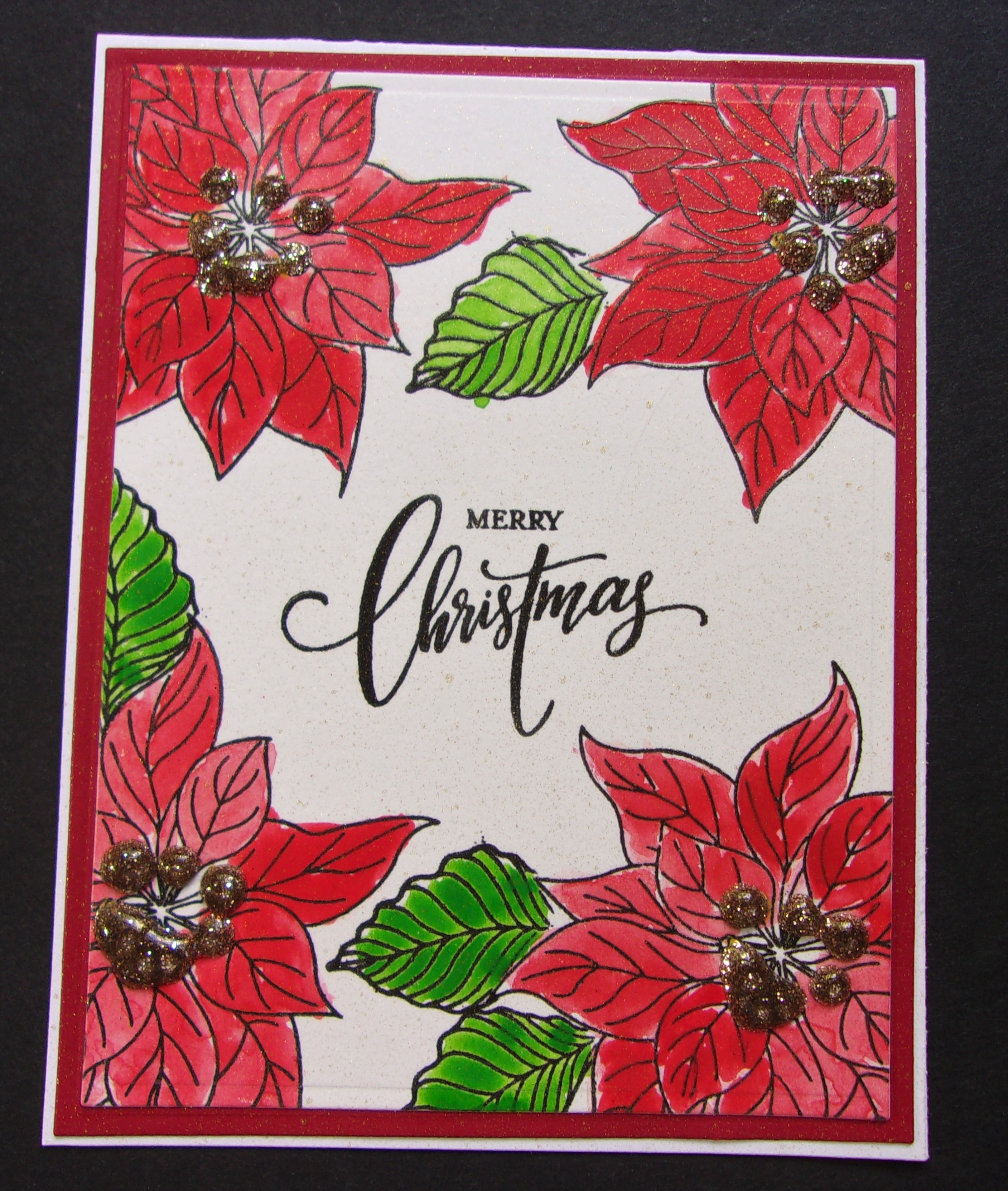 Christmas in July is happening on many websites and video channels. I am joining with Gina K Designs Challenge and Shopping our Stash Weekly challenge with a poinsettia card.