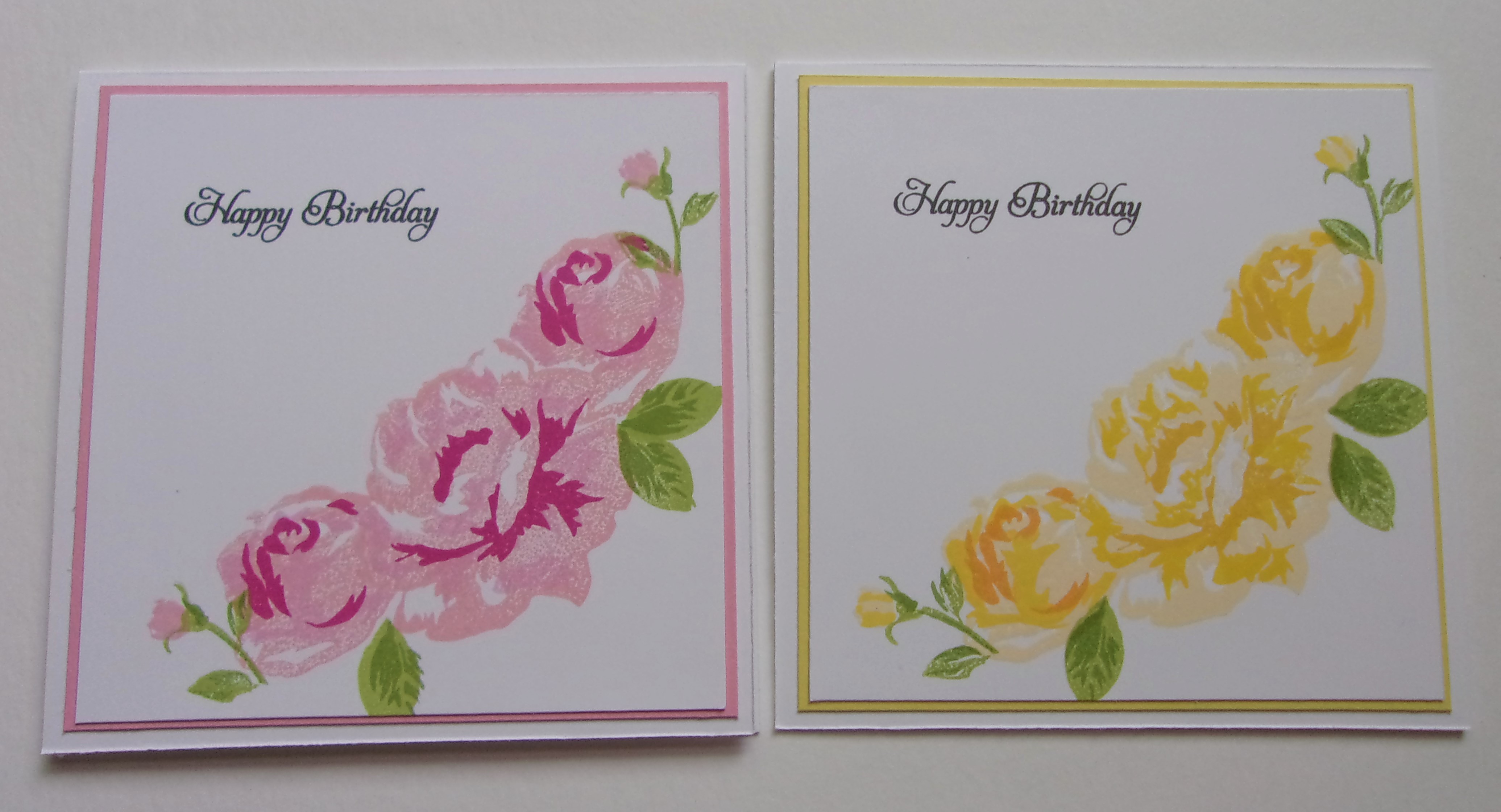 Today was the perfect day for me to post a rose card. It would have been my mother’s birthday and roses were her favorite flower. Each year, I would purchase a new rose set to use on her birthday card. This was a new set given to me, so I was thrilled to use it. I think my Mom would have preferred her roses to be just one color, but she would have enjoyed this card. Thanks for spending time with me and reading about my rose card.