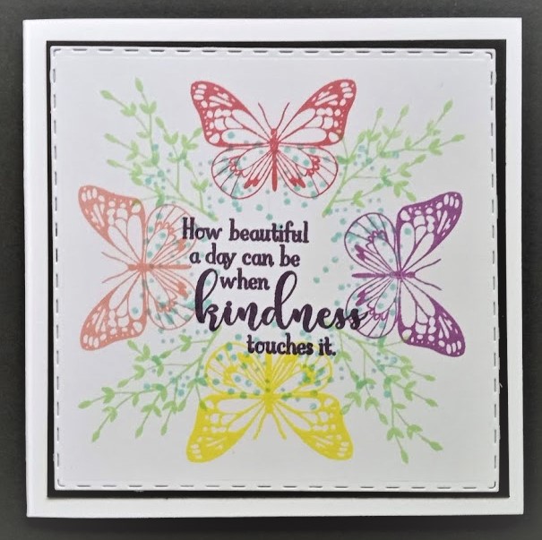 The leaves behind the can are a die from The Stamps of Life. They may be the first time I have used it, but it has been in my stash for a couple of years. The watering can and butterfly both came from the SSS set which came with matching dies. The embossing folder is Stampin Up. I use this cloud folder quite a bit.