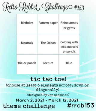 This card fits the Retro Rubber Challenge with the Tic-Tac-Toe grid.