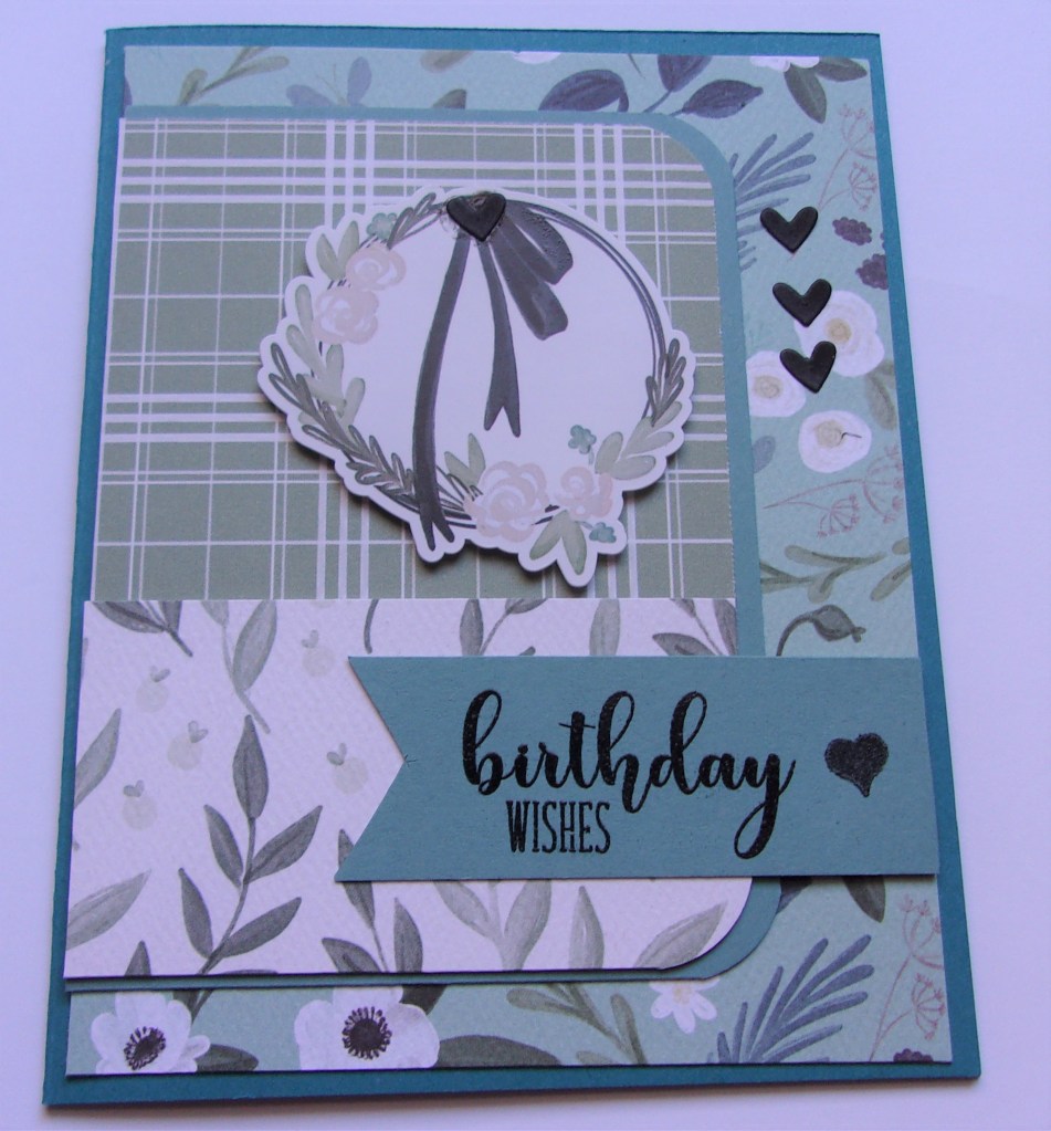 The above card was created with Carta Bella Home Again 6 X 6 pack of patterned paper. I did not own matching cardstock, so I used the back side of one of the patterns for the base layer. This card was mailed immediately after making it a few weeks ago.