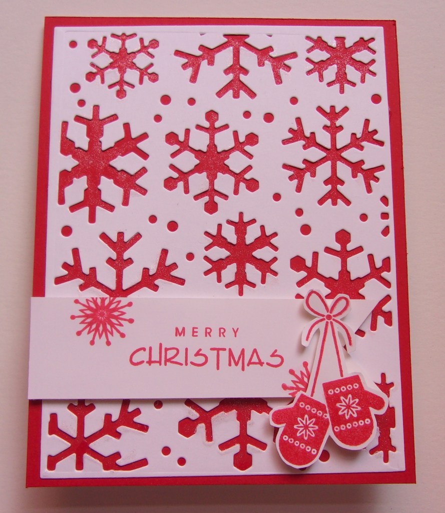 Combining several challenges with this card. The Make the Cards Challenge #44 is to make a winter themed card, while ModSquad Challenge is only snowflakes. My card is square for the MISTI challenge at SplitCoast Stampers. So fun when one card meets several challenges.