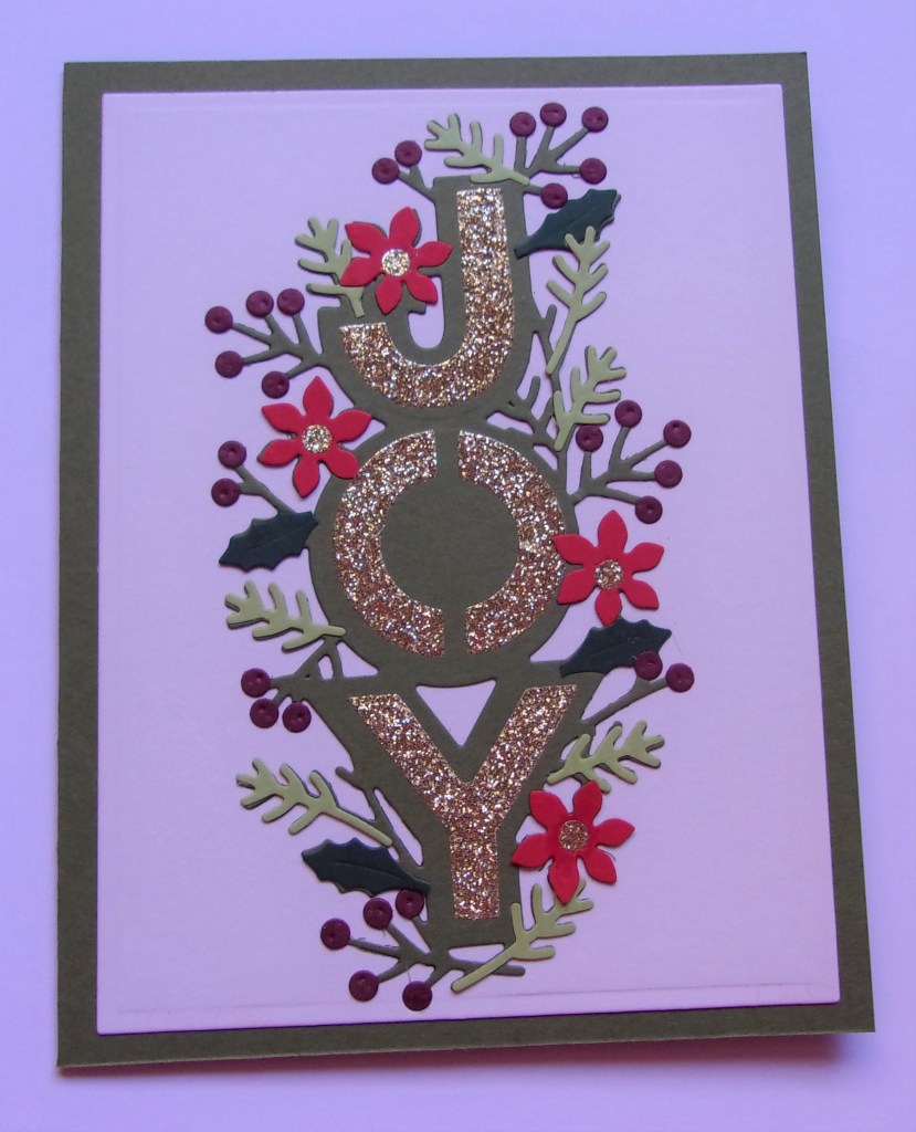 I saw this idea on Pinterest and followed the colors and placement of the flowers, holly leaves, pine leaves, and berries. I am not sure if I will make many as this is a time consuming process. It does make a lovely card.