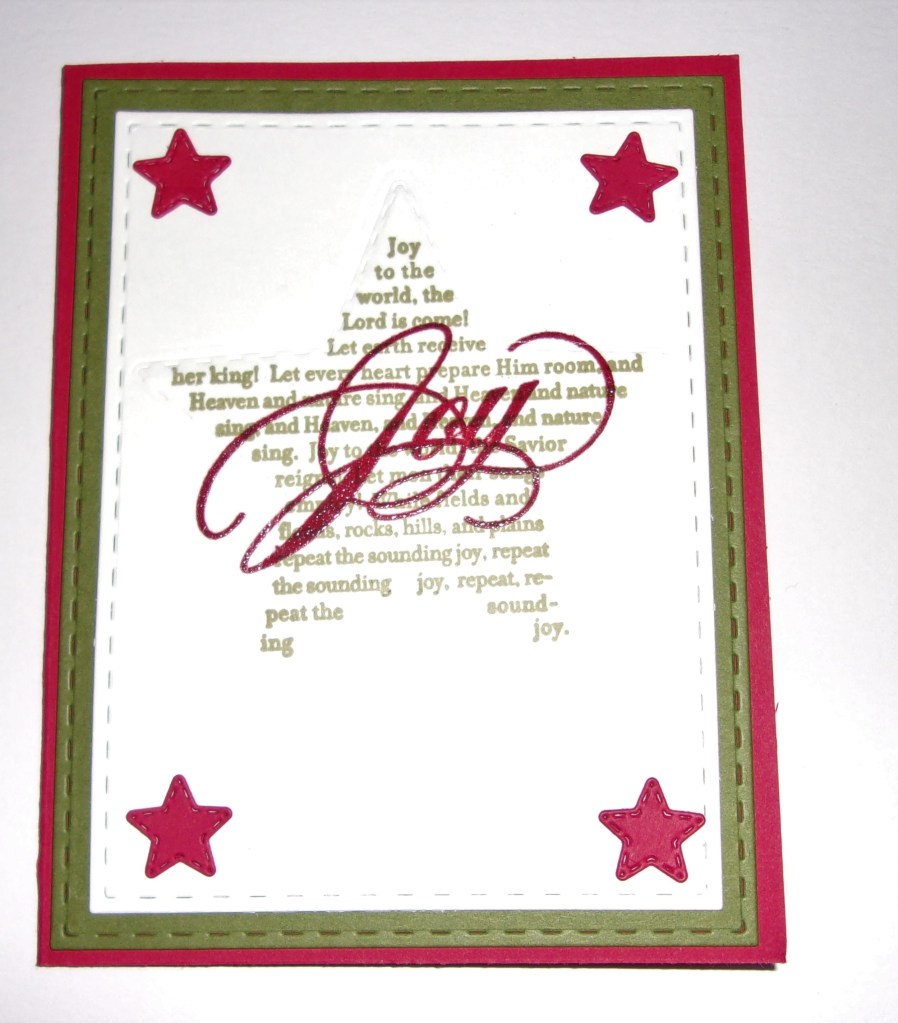 Each month, I make a card based on a theme with the Crafter’s of Faith group on Splitcoast Stampers. December is based on Matthew 2:10 When they [the Wise Men] saw the star, they were overjoyed beyond measure. The challenge is to use stars on your card.