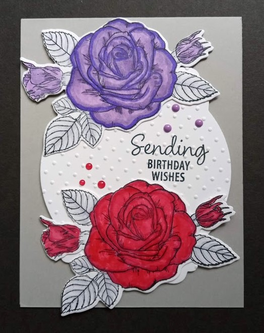 Today was the perfect day for me to post a rose card. It would have been my mother’s birthday and roses were her favorite flower. Each year, I would purchase a new rose set to use on her birthday card. This was a new set given to me, so I was thrilled to use it. I think my Mom would have preferred her roses to be just one color, but she would have enjoyed this card. Thanks for spending time with me and reading about my rose card.