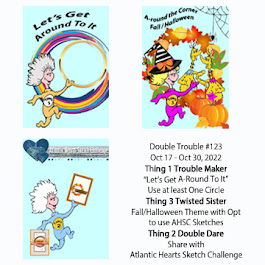 With this challenge, Thing1 said to use a circle or circular element, so my wreath is the circle. Thing3 said to use a fall or Halloween theme, so I chose fall. I missed Thing2 because I placed my greeting in the wrong place. If I had placed it in the center of the wreath, it would have worked. It is still a fun challenge and I enjoyed creating the wreath card.